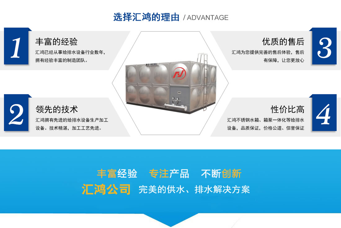 鹽城匯鴻供水設(shè)備有限公司是一家專業(yè)從事供排水設(shè)備系統(tǒng)生產(chǎn)、銷售與工程安裝于一體的專業(yè)企業(yè)。本公司主要生產(chǎn)、銷售、安裝各類不銹鋼水箱、箱泵一體化、不銹鋼保溫水箱、組合式水箱、聚氨酯保溫模塊、圓柱形水箱、消防水箱、玻璃鋼水箱、玻璃鋼化糞池等十多個系列數(shù)百種規(guī)格,產(chǎn)品廣泛應(yīng)用于建筑、環(huán)保、化工、食品、消防等各個領(lǐng)域。具有優(yōu)質(zhì)高效、節(jié)能環(huán)保、安全可靠、實用方便等優(yōu)點,是二十一世紀商用和家用生活的首選產(chǎn)品。本公司生產(chǎn)設(shè)備先進,技術(shù)精湛,各種產(chǎn)品的加工工藝,技術(shù)性能和衛(wèi)生指標均符合國家標準,并可根據(jù)用戶提供的技術(shù)參數(shù)和要求設(shè)計制造現(xiàn)場加工……【更多詳情】 | |